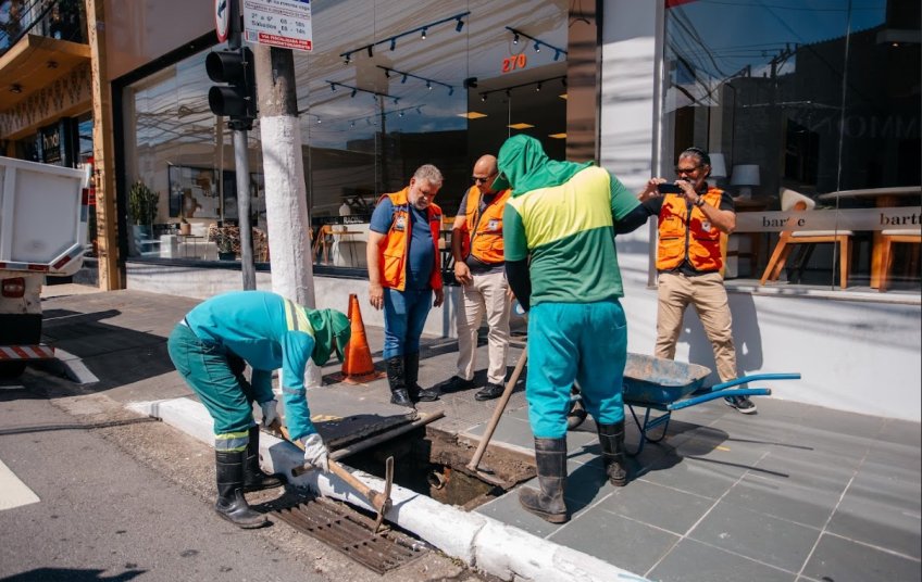 São Bernardo realiza ação integrada de prevenção a alagamentos com a limpeza de bocas de lobo na região central