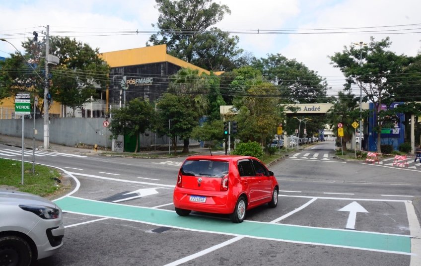 Santo André instala faixas verdes em cruzamentos para melhorar fluidez no trânsito