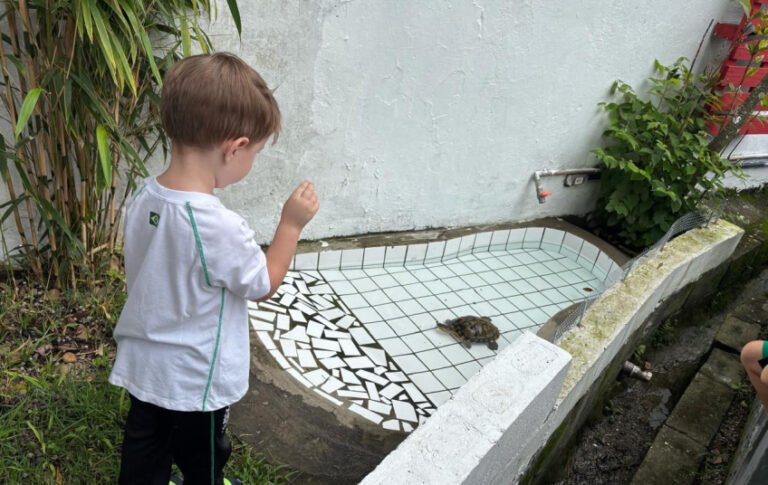 Crianças aprendem sobre cuidado e respeito aos animais com tartaruga mascote