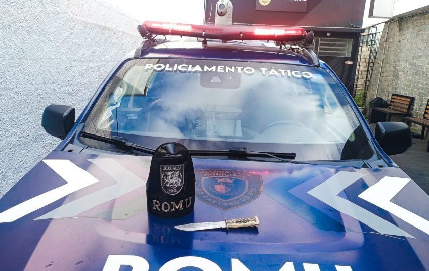 O homem foi localizado nas proximidades do estabelecimento e, durante a abordagem, os GCMs encontraram uma faca escondida à sua cintura.